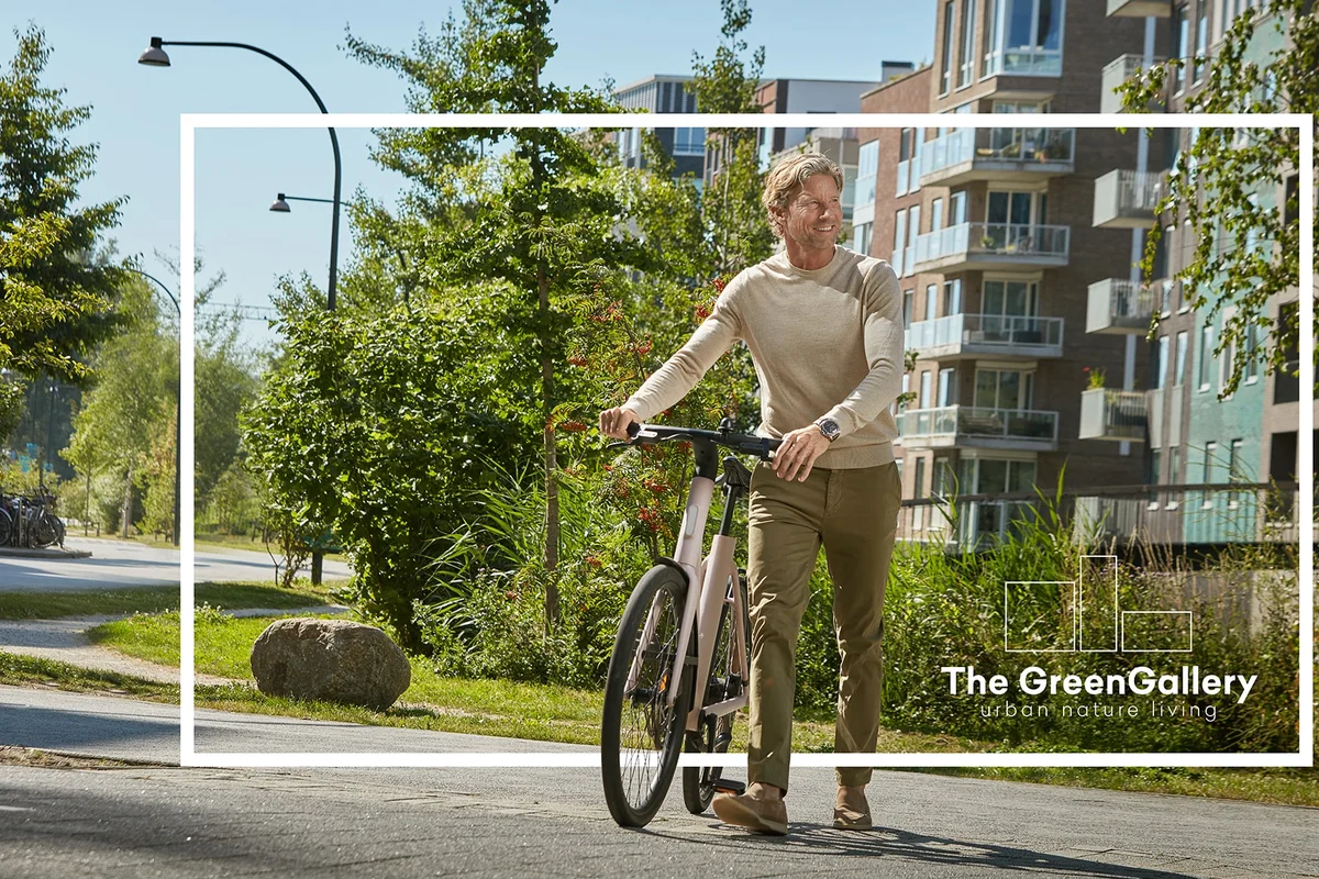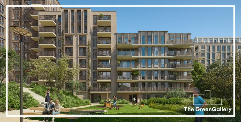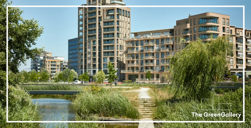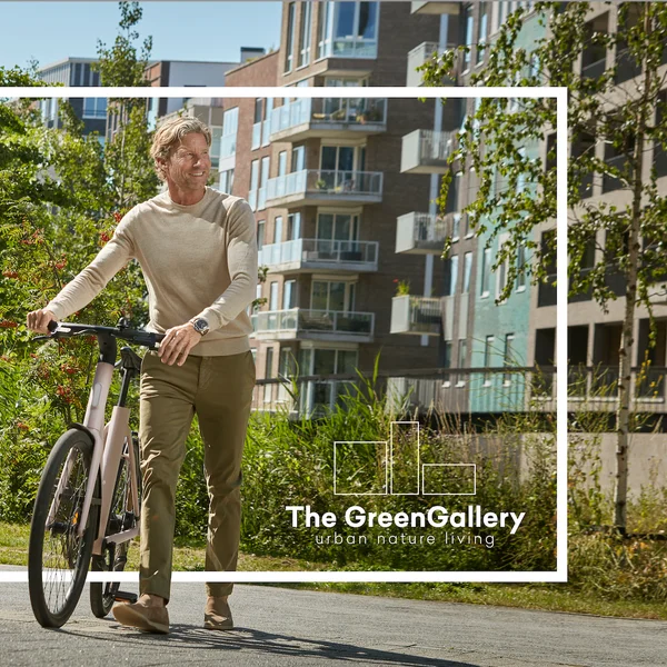 Vorige week deelde we de eerste beelden van The Green Gallery. Ondanks dat deze beelden nog geen kleur hebben, zie je al heel duidelijk dat groen de hoofdrolspeler is. De royale binnentuin is ontworpen door Felixx Architects en biedt speelplekken, moestuintjes, plekken om te ontspannen/ontmoeten in het groen of aan het water. Klimplanten, nestkasten en regenwateropvang maken het geheel duurzaam én biodivers.