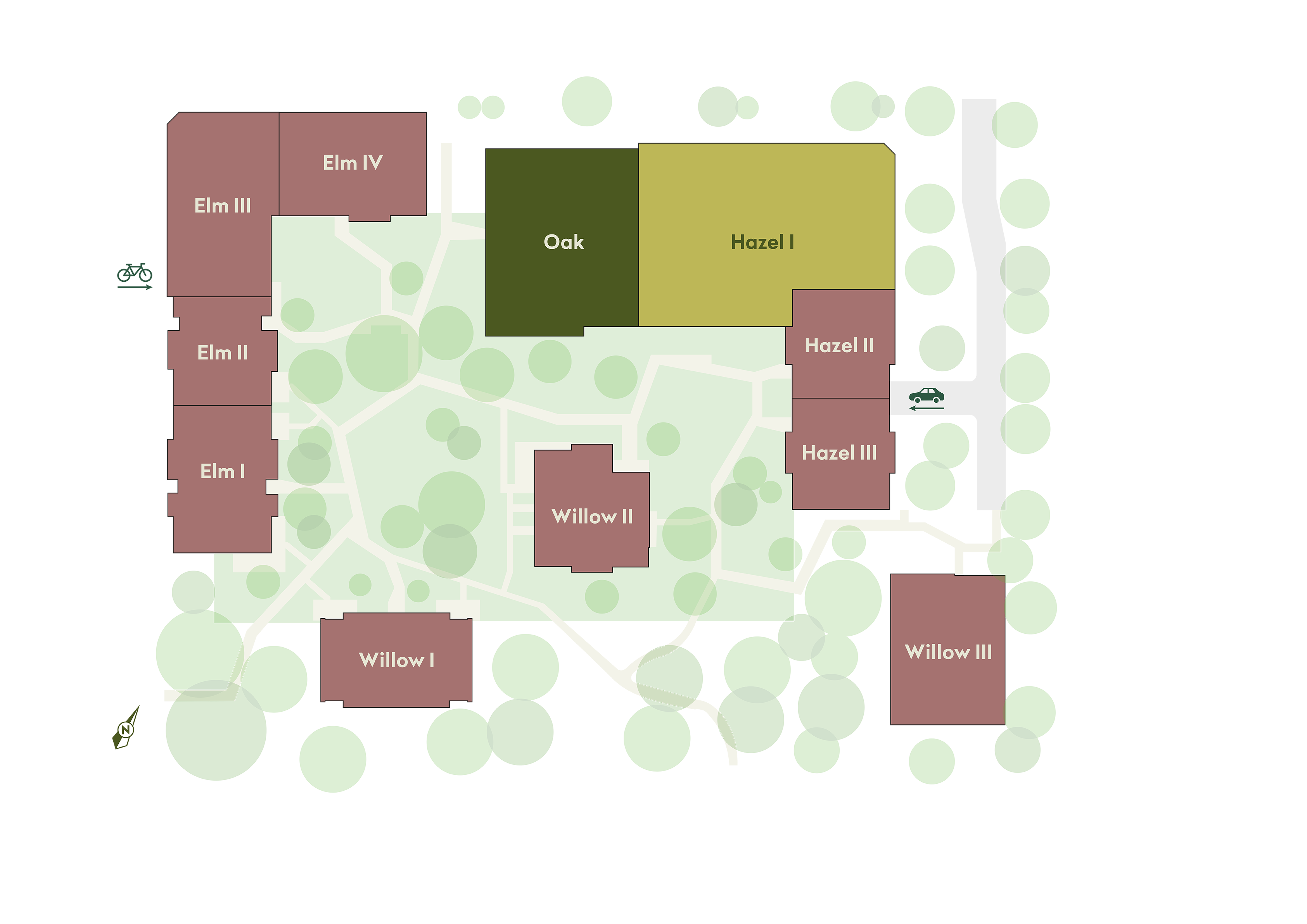 In november start de verkoop van de eerste koopwoningen in Hazel II en III. Deze gebouwen liggen aan de rechterzijde in het plan en bieden een mix van 3,4 en 5 kamer appartementen. Of je nu starter bent of doorstromer, hier vind je een woning die bij je past.