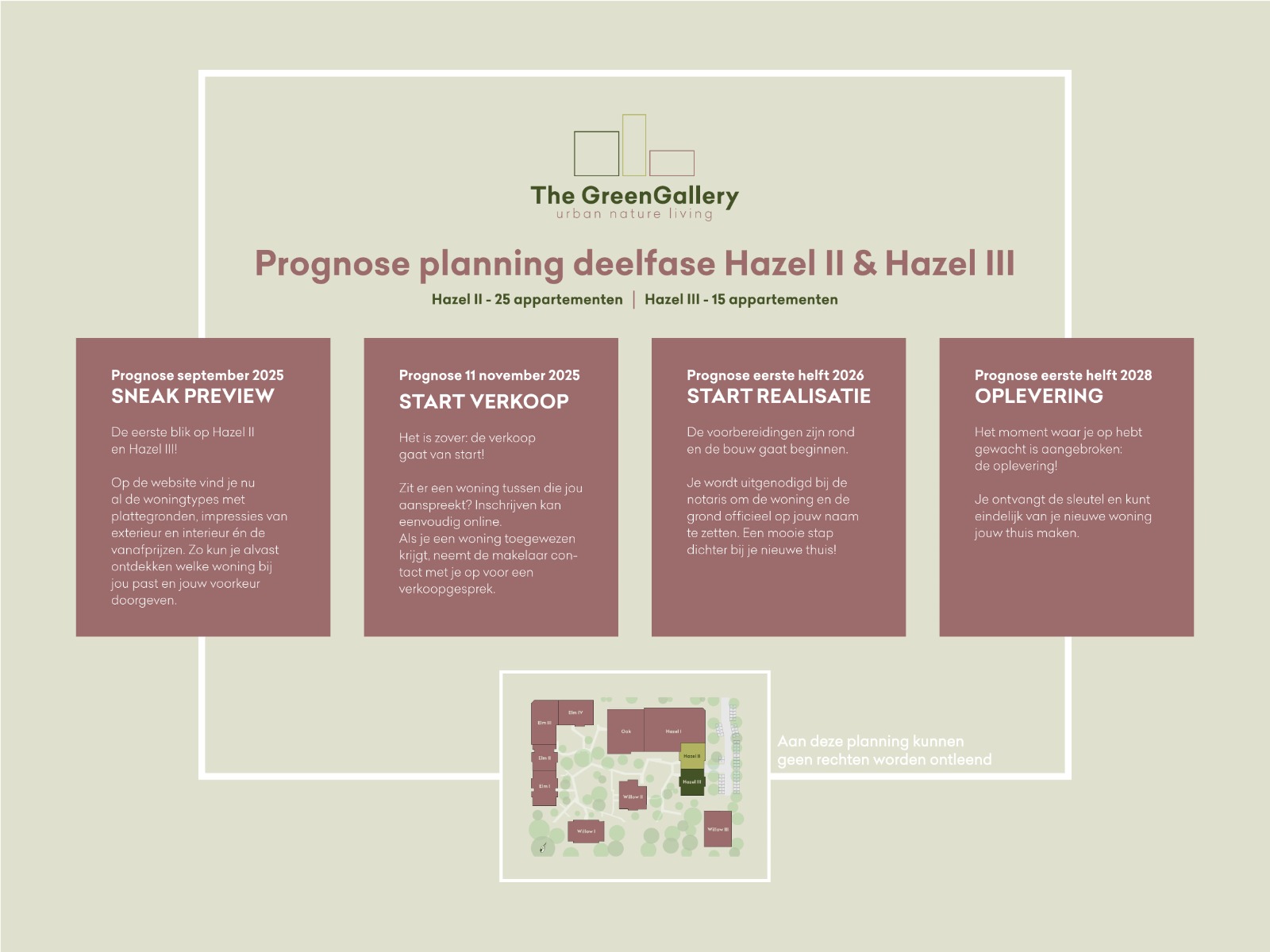 Het is bijna zover: op 11 november gaat de verkoop van de woningen in blok Hazel in The Green Gallery in Holland Park Zuid, Diemen, van start. Na maanden van voorbereiding en veel enthousiasme van geïnteresseerden komt het project nu in de volgende fase. Binnenkort kun je je officieel inschrijven voor jouw ideale woning in dit unieke, duurzame woonconcept.