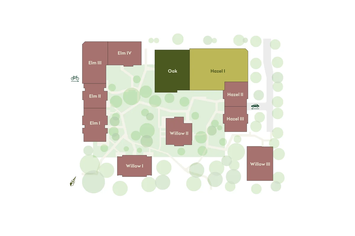 The Green Gallery bestaat uit meerdere gebouwen met elk een eigen naam en karakter: