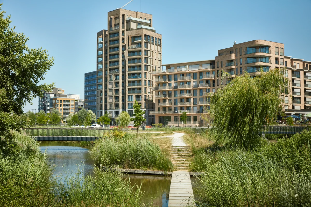 Wat Holland Park echt speciaal maakt, is de mooie verbinding van de stad met de natuur. Groene parkroutes en natuurpaden verbinden de vier kavels. Stel je voor: je woont aan een gezellige boulevard met aan de achterzijde een weids groen uitzicht op het park, je dagelijkse voorzieningen waaronder het winkelcentrum Diemerplein in de buurt en de bruisende stad Amsterdam dichtbij. Wat wil je nog meer?